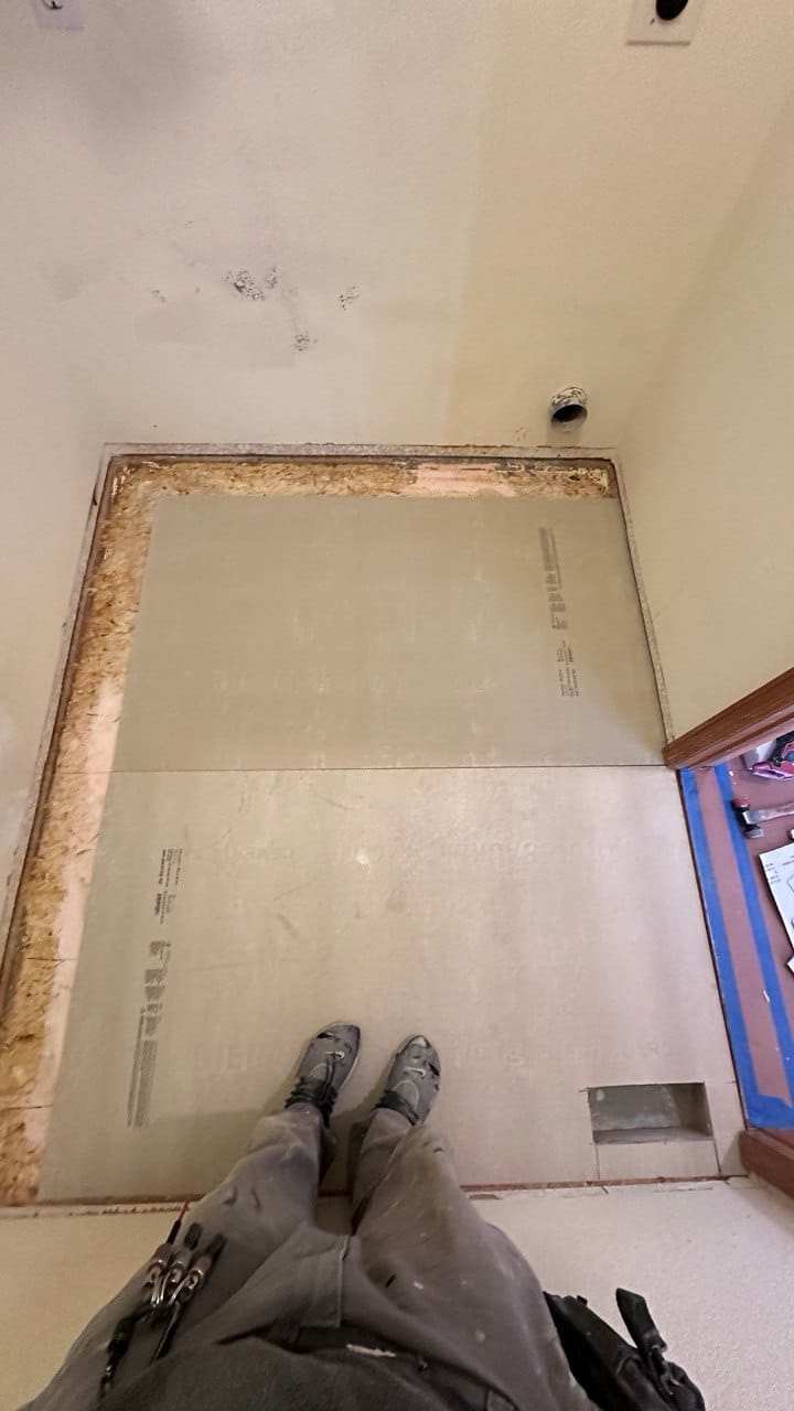 - Verify subfloor is minimum 5/8″ thick plywood or 3/4″ OSB