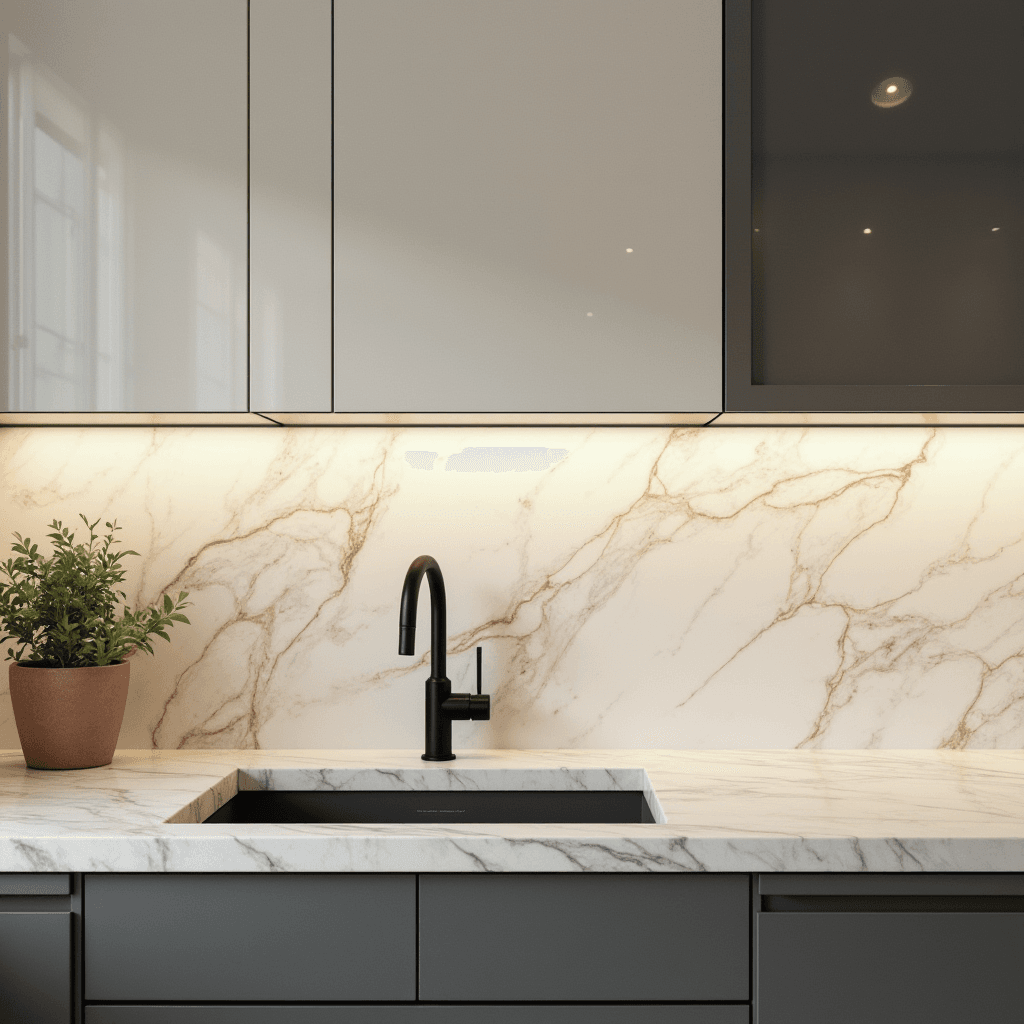 - Countertop tile installation with precision edge finishing