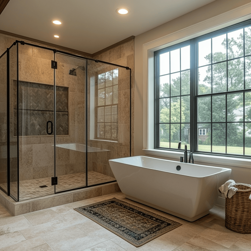 - Custom bathroom floor tiling with slip-resistant options
