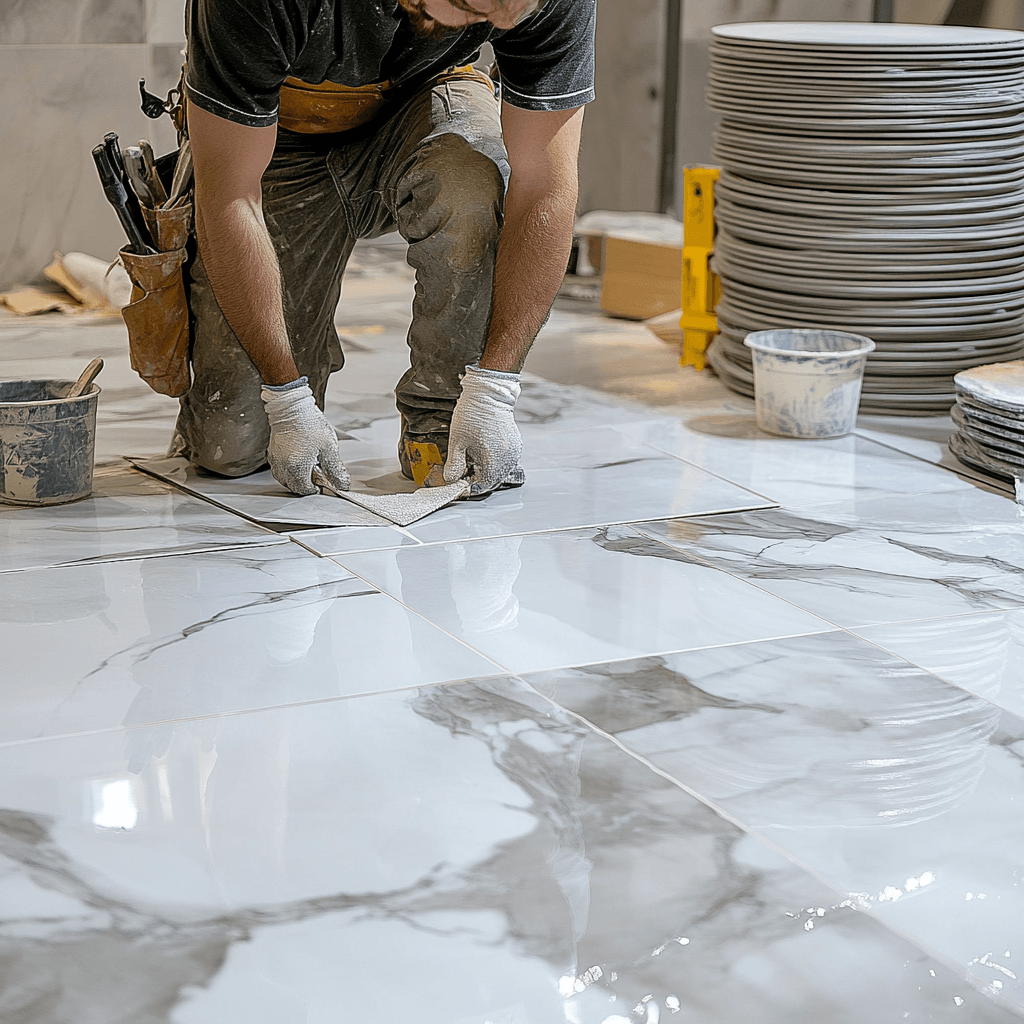 - Large-format porcelain tile installation